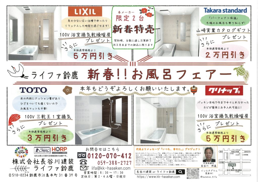 2026年新春お風呂フェアーを開催します!!